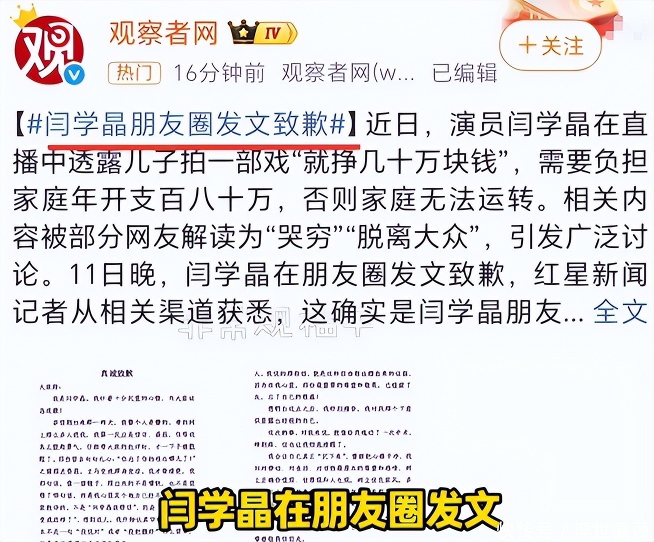 1日,闫学晶代言的东北大酱品牌,已经发公告和她解除合作。